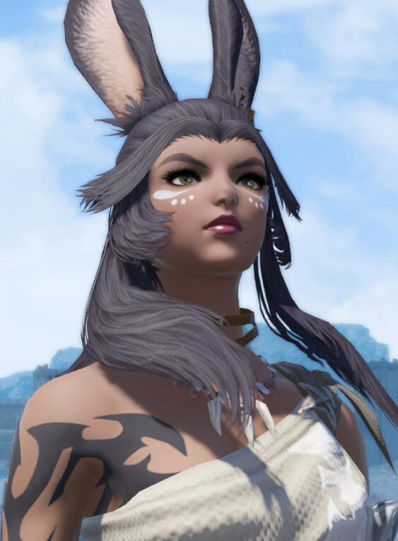 When she was but a toddler, Meiko found herself on a slavers’ ship among many other women and young girls, bound for who-knows-where. It was by pure luck that this ship was intercepted by a band of pirates, who freed the women aboard as a result. When no one claimed her as their own, she was taken in by a Lalafell by the name of Komochi Mochikoko. He took her home to his wife, Kokopi, and they named her in the style of their own people, as they knew little about Viera. Eventually, this would be the same case eight years later when they took on a young Miqo’te -- her brother, A’kihiko.When A’kihiko announced he would be an adventurer, his sister insisted she go with him. Desperate to strike out on his own, he departed a day early and led her to believe he would meet her in Limsa Lominsa. She hurried to catch up, spending all her coin to do so, only to realize she had been duped. Thus, Meiko worked with the Rogues Guild for a time to make up the coin, and even joined the Maelstrom.But it was a fateful run-in with Troupe Falsiam that changed her life forever. Dancing was quickly recognized as her passion, and more than that, it helped her earn plenty more coin. By the time she had enough for an airship pass, her brother was in Ul’dah, where they finally reunited. It was here that he explained his joining the Scions of the Seventh Dawn, and as a result, Meiko insisted she join as well.Prior to the Bloody Banquet, a run-in with Midgardsormr locked away A’kihiko’s Blessing. Throughout the events of Heavensward, as he proved himself alongside her, Meiko too found herself earning Hydaelyn’s Blessing. Intimidated and feeling unworthy, she kept this to herself until she no longer could. Even after the Scions were told, she insisted A’kihiko continue to bear the title alone -- as a surprise to their enemies, is what she would say. In truth, she feared the expectations and burdens that came with all that attention.The Scions would then be pitched into the liberation of both Doma and Ala Mihgo, and despite their many obstacles and tragedies, they would be victorious. As yet another clash with the Empire lingered on the horizon, the Scions would one-by-one begin to fall into a mysterious and comatose state, brought about by a Call from another world.It was moments before the decisive battle that A’kihiko, too, was whisked away by the Call. Distraught and gripped by insecurities, Meiko feared she was not enough to defeat the Empire -- but soon realized that that did not matter. She never considered herself the true Warrior of Light, but right now she had to be.She arrived at the First a different person -- or, perhaps, a more hardened version of herself. Above everything else, she swore to do whatever it took to get the Scions back to Eorzea. A’kihiko had been the Exarch’s original target for the summoning, but mistakes in the spell meant that Meiko was their only hope. Although not used to the “protagonist” levels of attention, she came to fully embrace her role as the Warrior of Darkness and defender of the First.Since their return, Meiko has set about splitting Warrior Of Light responsibilities with her brother once again, but speaks of her title far more publicly than prior. Most Eorzeans don’t know, though, and simply praise her acts as a hero among the other Scions.